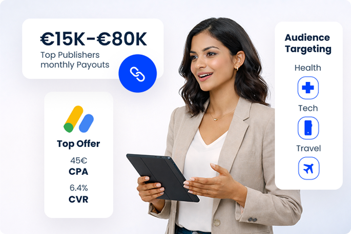 Monetiza tu tráfico de forma eficiente con soluciones de generación de leads y adquisición móvil de alto rendimiento, adaptadas para publishers. Maximizamos el valor de cada fuente de tráfico, a través de la web, aplicaciones, correo electrónico y SMS, para aumentar tus ingresos.
