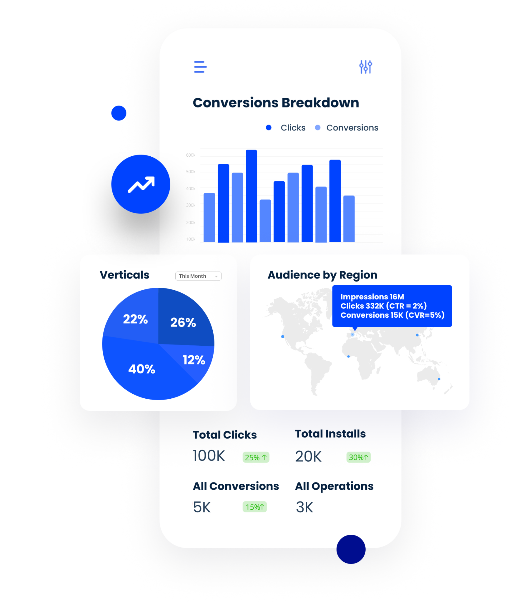Nous générons de la performance grâce à un mix de trafic diversifié, adapté à vos objectifs d’acquisition d’utilisateurs. Des publicités vidéo immersives aux placements display à forte intention, nos formats sont optimisés pour l’engagement et le ROI.